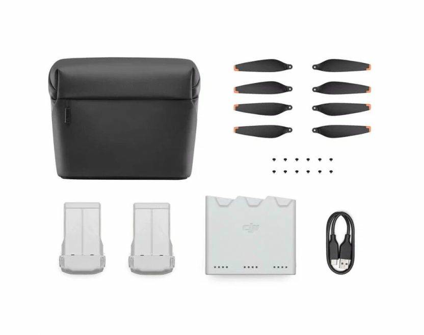 Комплект аксессуаров DJI Mavic Mini 3 Pro Fly More Plus DJI Mini 3 Pro Fly More Plus включает в себя две батареи Intelligent Flight Batteries Plus, двухсторонний зарядный концентратор, кабель для передачи данных, наплечную сумку, запасные пропеллеры и винты, обеспечивая всестороннюю поддержку для аэрофотосъемки по более выгодной цене, чем покупка по отдельности. DJI Mini 3 Pro Intelligent Flight Battery Plus с максимальным временем полета 47 минут дает вам больше удовольствия от каждого полета. Двухсторонний зарядный концентратор может последовательно заряжать пульт дистанционного управления и три батареи. Он также может быть использован в качестве мобильного источника питания. С помощью зарядного устройства DJI USB-C мощностью 30 Вт (продается отдельно) три интеллектуальные летные батареи DJI Mini 3 Pro Plus можно полностью зарядить всего за четыре часа, что значительно повышает эффективность зарядки. Пропеллеры, специально изготовленные для DJI Mini 3 Pro, производят меньше шума и прошли точные испытания на динамическую балансировку, чтобы обеспечить более высокую аэродинамическую эффективность и мощную тягу летательного аппарата. Специально созданная для DJI Mini 3 Pro сумка через плечо обеспечивает достаточно места для одного дрона и аксессуаров, таких как один пульт дистанционного управления, три аккумулятора, один зарядный концентратор, пропеллеры, набор фильтров нейтральной плотности, кабель для передачи данных и SD-карта.