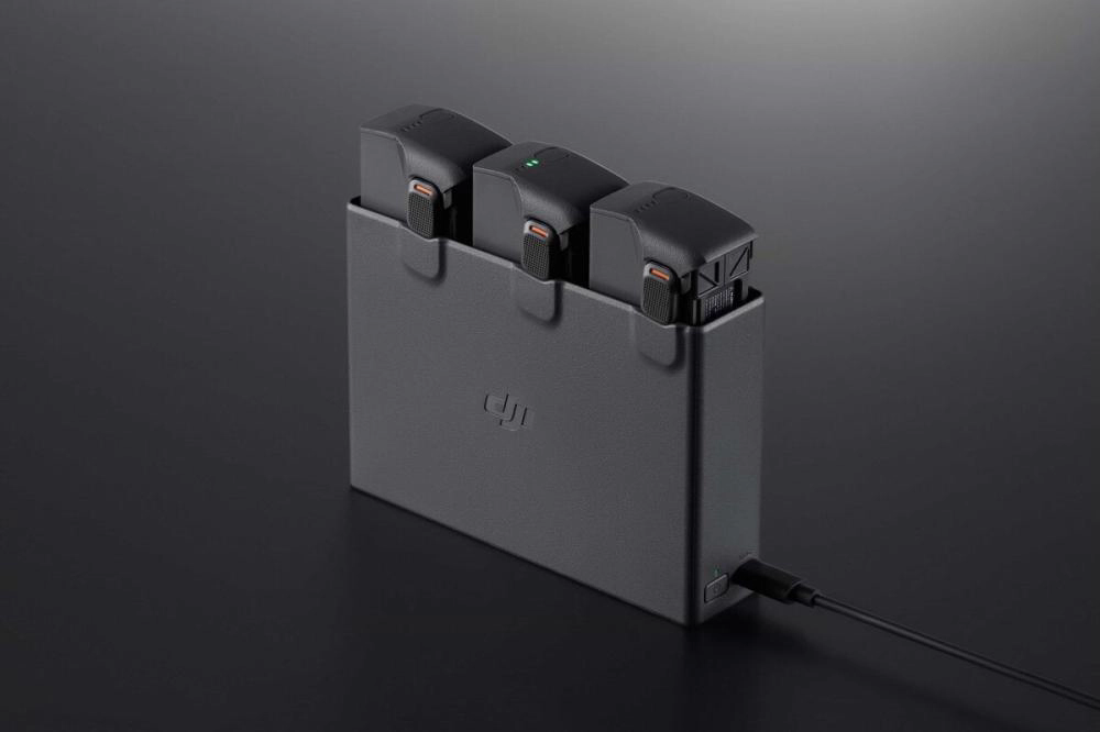 Обеспечивает хранение, зарядку и накопление энергии для аккумуляторов. В сочетании с портативным зарядным устройством DJI мощностью 65 Вт он может полностью зарядить интеллектуальную летную батарею всего за 45 минут. Он может последовательно заряжать три аккумулятора одновременно, избавляя от необходимости заряжать аккумуляторы один за другим. Он также может служить мобильным блоком питания для зарядки таких устройств, как очки DJI Goggles и смартфоны.