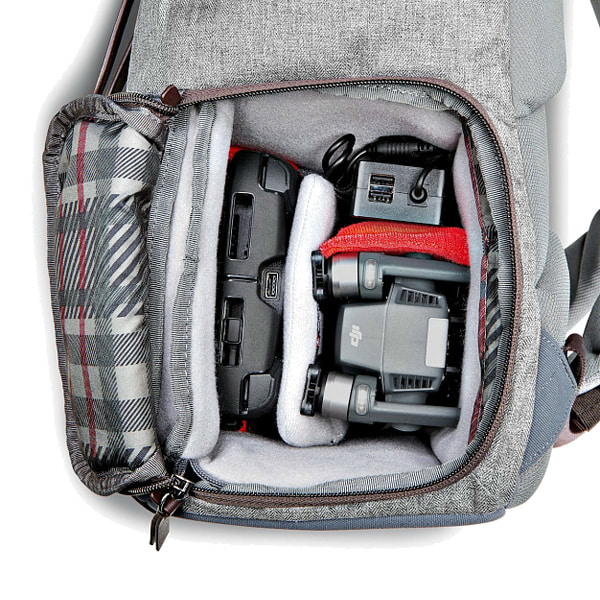 Рюкзак для дрона/камеры Manfrotto Windsor имеет внутренний съемный защитный кофр, который вмещает среднюю зеркальную фотокамеру с установленным объективом (до 200 мм) и несколько дополнительных объективов. Также, рюкзак можно использовать для хранения и транспортировки дронов DJI Mavic 2, Mavic Air 2, Mavic Mini и других (вмещает: дрон, контроллер, две батареи и зарядное устройство).