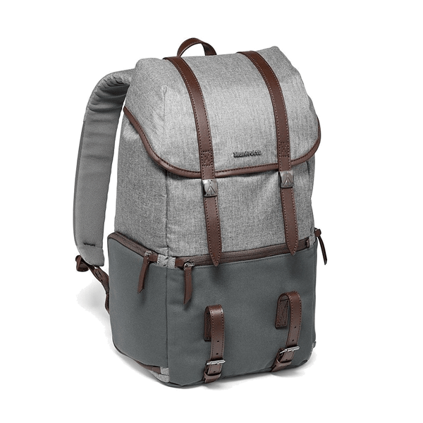 • водоотталкивающая ткань серого цвета в сочетании с натуральными кожаными ремнями.